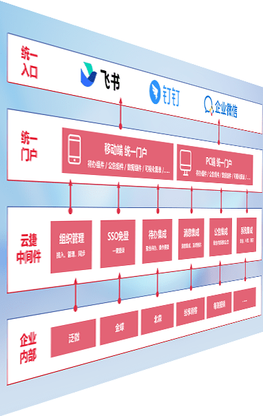 对协作平台提供支持服务,,支持企业应用与协作平台对接,,,包含组织同步、、、消息集成、、待办集成等。。。支持目前主流的协作平台:钉钉、、、、企微和飞书。。。。